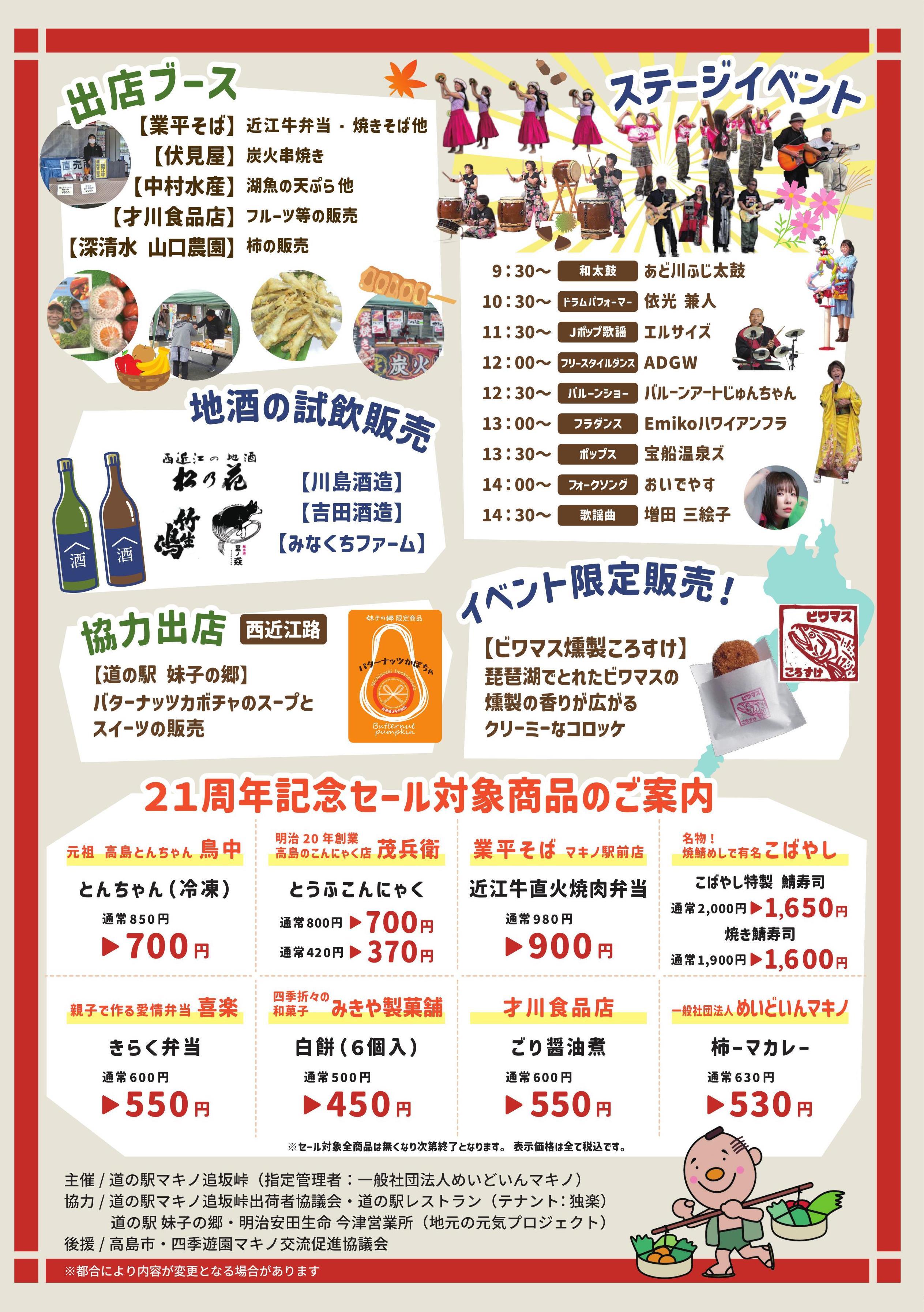 - 開催場所道の駅マキノ追坂峠(滋賀県高島市マキノ町海津897-27)
