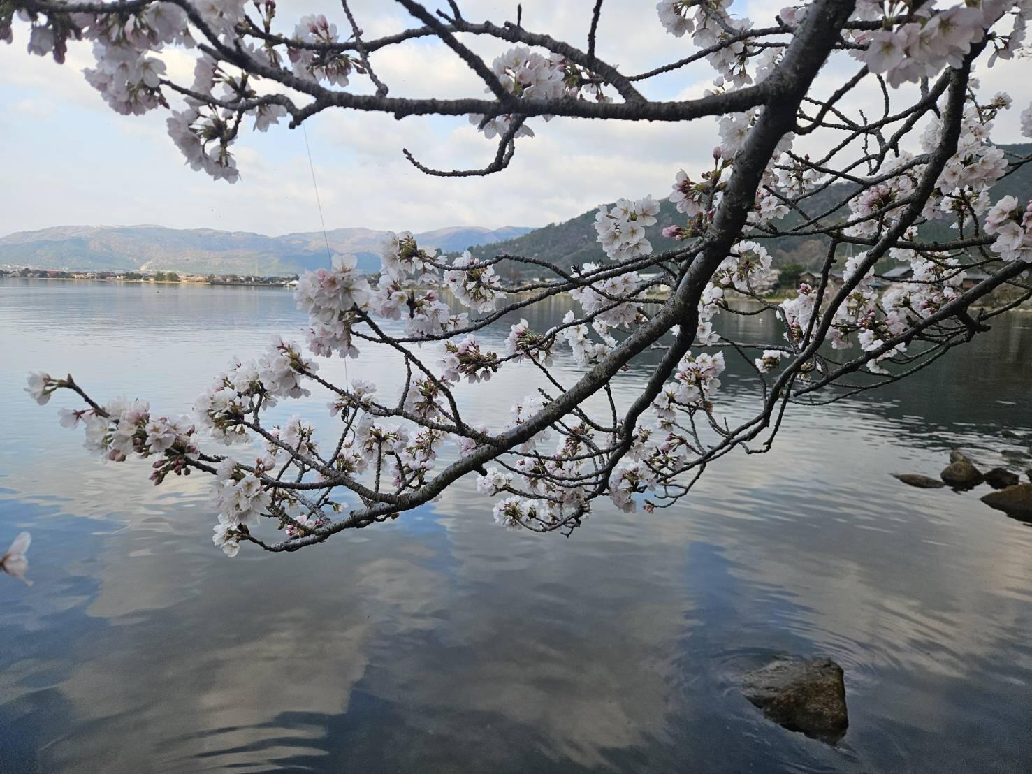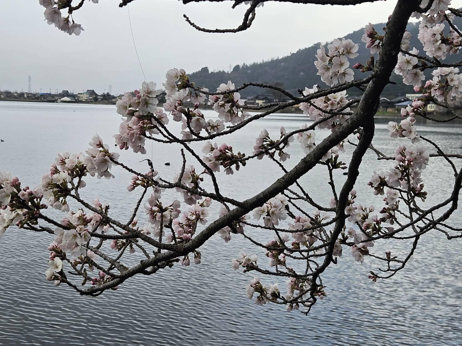 例年4月初旬に開花し、開花から5~6日後に満開となる場合が多いですが、気候等の影響により前後します。京都市内より1週間程度、彦根市より3日程度遅くなることが多いので、参考にしてください。また、「清水の桜」はエドヒガンザクラですので、海津大崎の桜より5~7日程度早く満開を迎えることが多いです。開花予想は、民間気象予報(WeatherNews等)も参考にしてください。